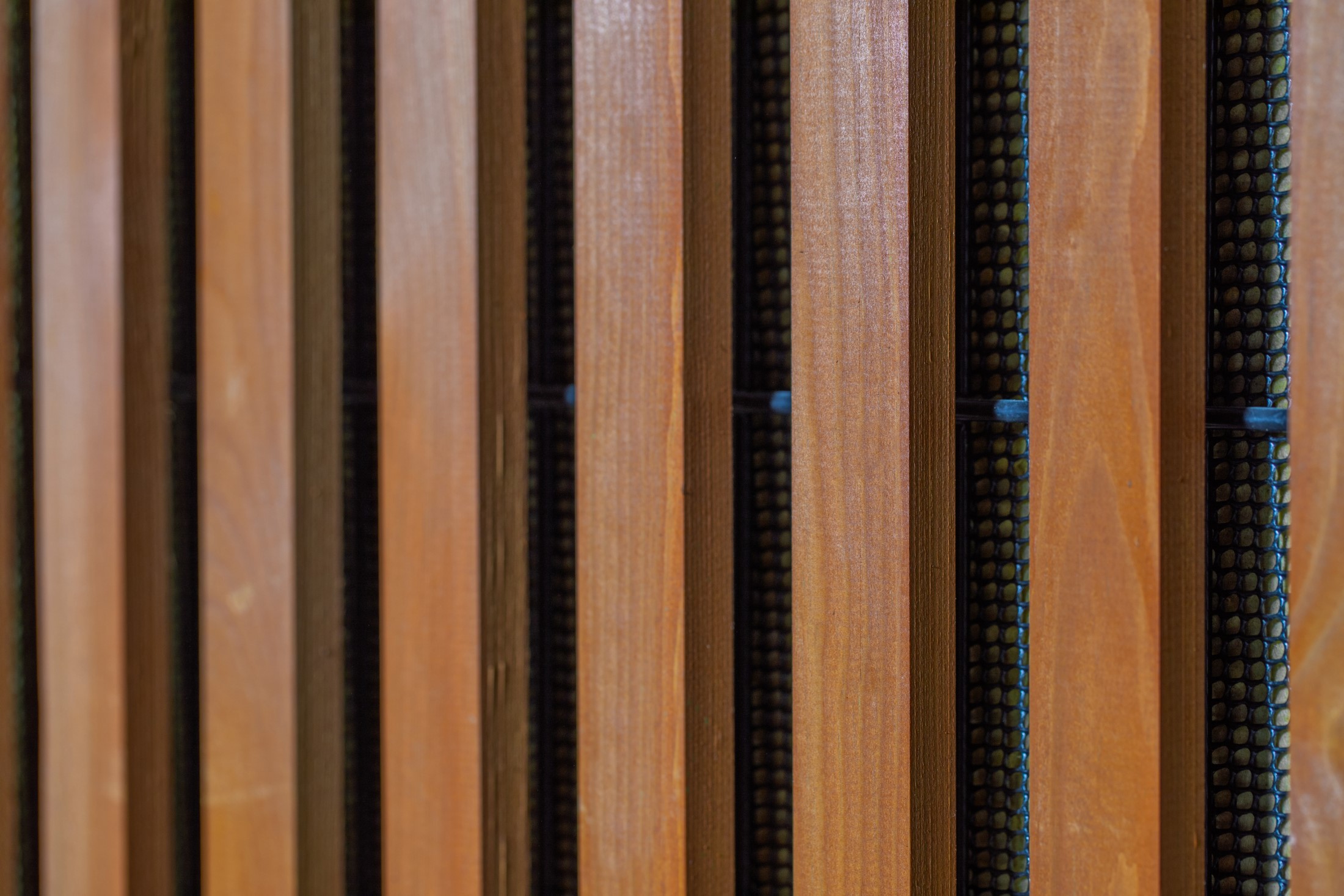 Geluidsscherm met kern en geluidsabsorberend materiaal van ROCKWOOL® steenwol, bedekt met PE gaas.